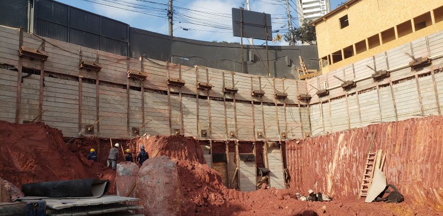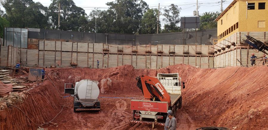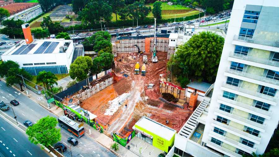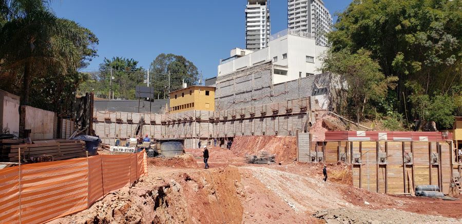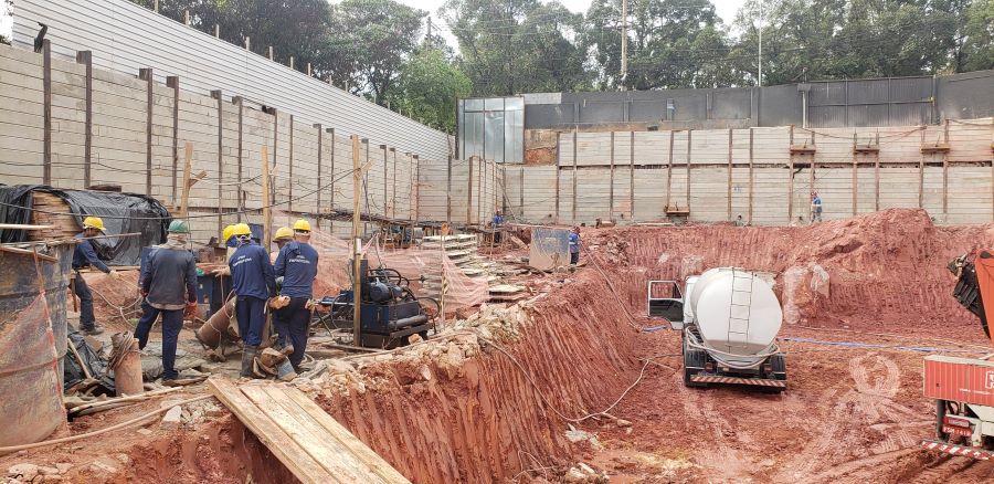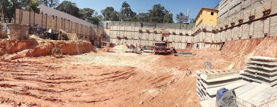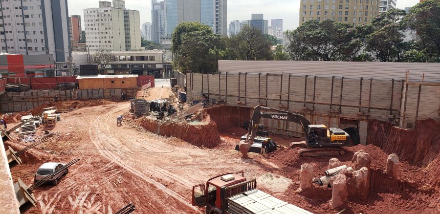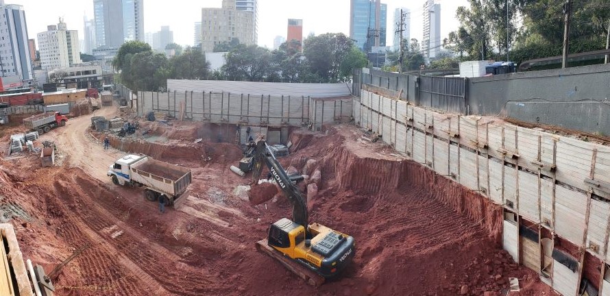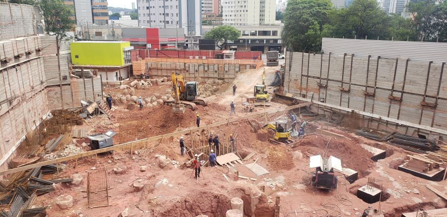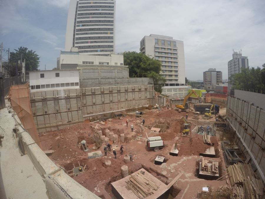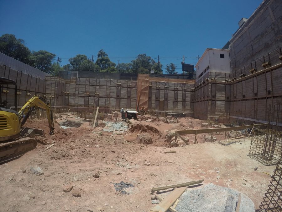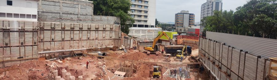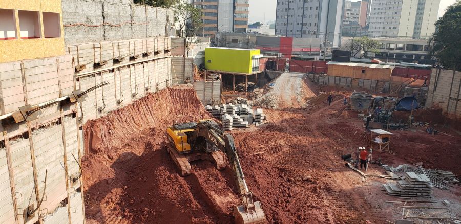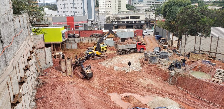 | - Foto em 01/09/2022 - Vista da obra com escavação chegando ao 3o.SS | |