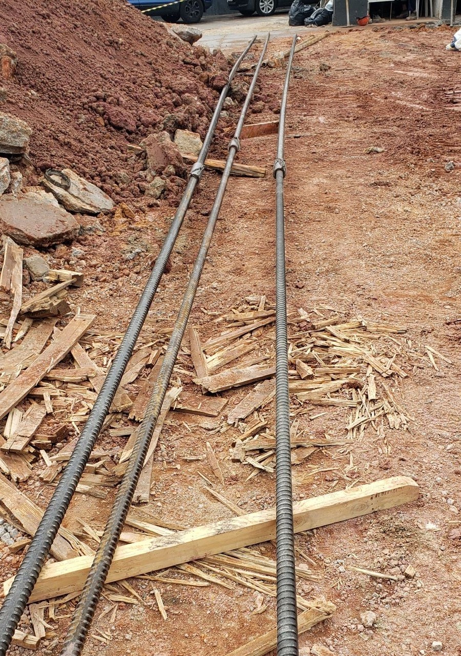 | - Foto em 17/11/2021 - Barras de tração para as estacas da prova de carga | |