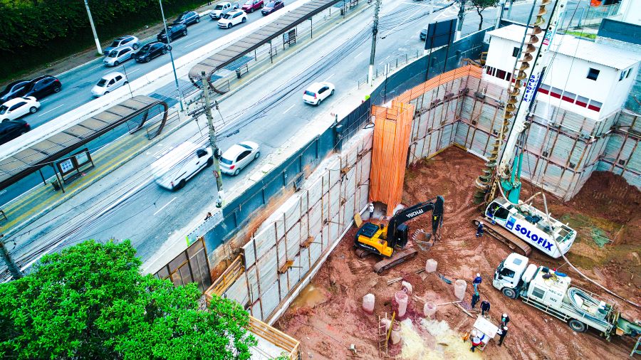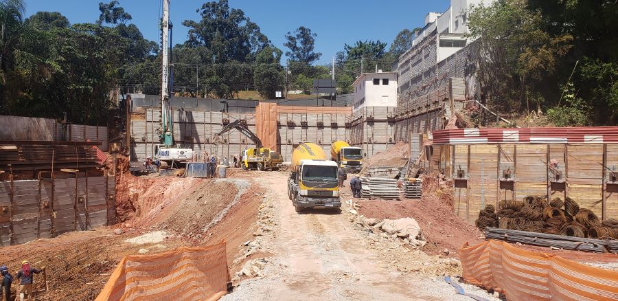 | - Foto em 20/06/2022 - Escavação geral da obra, e inicio das cortinas do 1o.SS, junto a Av.Francisco Morato (fundos). | |