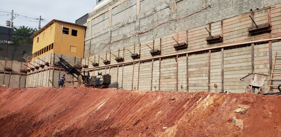| - Foto em 16/08/2022 - Execução e injeção dos tirantes do 2o.SS. | |