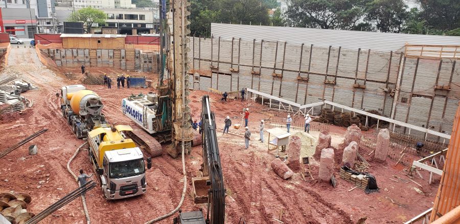 | - Foto em 21/09/2022 - Início das fundações em estacas Hélice Contínua. | |