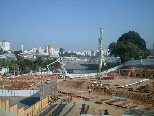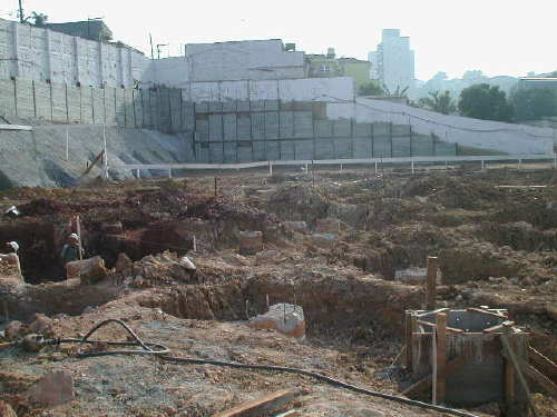Foto em 21/11/02 - Estrutura dos prédios em andamento. |